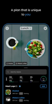 2. Manage your nutrition with personalized meal plans, with the ability to capture and monitor your food intake, and compute your nutritional progress directly within the app.