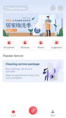(1) Living in the park/community and related housing sources; (2) Property services, complaints, repairs, cleaning, etc.; (3) Online top-up; (4) bill payment; (5) Notice Announcement (6) Intelligent door opening;
