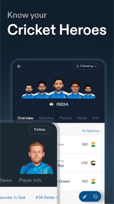 Get real-time live scores, ball-by-ball commentary, match highlights, trending cricket stories and viral cricket content across various series like the World Cup, IPL, Test Championships and more, all in one smart, feature-rich app.