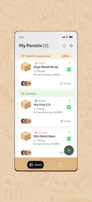 🪩 Build communal playlists that everyone can add to 🎶 Set a frequency—queue up songs and surprise each other 🎁 Unwrap new tracks as they're added, like musical gifts 📦 Follow other parcels to discover what others are listening to