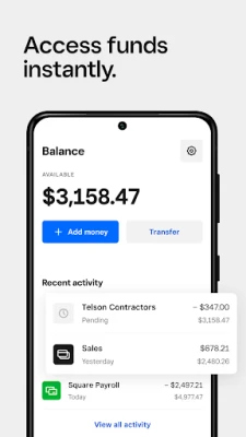 - Process transactions offline, offer preset tip amounts, and transfer funds instantly (or in 1–2 business days for free)