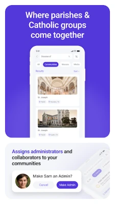 Parish & Community Groups: Join your parish or Catholic ministries, follow Mass times, and receive important announcements instantly.